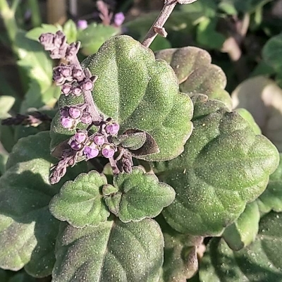 (栽培種;全株有毛;葉對生,倒卵至菱形,葉緣鈍鋸齒;花冠淡紫色;具有到手香之味道) ●臥地延命草(Plectranthus prostratus) (栽培種;台灣物種名錄標名臥地延命草) ●愛氏延命草(Plectranthus ernstii) (栽培種) |