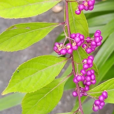 (Callicarpa) ==台灣原生種== •紫珠(Callicarpa dichotoma) (原生種) ●鬼紫珠(Callicarpa kochiana、枇杷葉紫珠) (原生種;台灣物種名錄標名鬼紫珠;維基百科標名枇杷葉紫珠;常綠灌木或小喬木;枝葉密生黃褐色毛;單葉對生,長橢圓形;聚繖花序,腋生;花朵緊密;漿果球形,白色;植物名加鬼字,通常意指多毛或多刺) ●日本紫珠(Callicarpa japonica、女兒茶) (原生種;原產於東亞;世界植物在線 POWO 標示 Callicarpa japonica var. luxurians = Callicarpa japonica,皆為有效學名,附有照片(可能含有變種的照片);台灣物種名錄將 Callicarpa japonica 標名為女兒茶,將 Callicarpa japonica var. luxurians 標名為朝鮮紫珠,世界植物在線 POWO 處理為同一種;維基百科將 Callicarpa japonica 標名日本紫珠;灌木;莖呈紫紅色;花枝常呈下垂狀;單葉對生,長橢圓形,靠近先端的前半部鋸齒緣,靠近葉柄的後半部全緣,具短柄;聚繖花序,腋生;花冠白色至淡紫色;核果球形,成熟紫色) |
