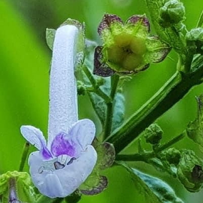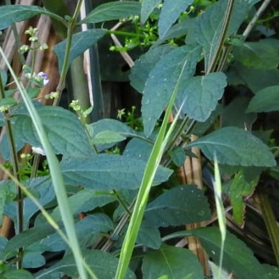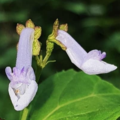 (栽培種;全株有毛;葉對生,倒卵至菱形,葉緣鈍鋸齒;花冠淡紫色;具有到手香之味道) ●紫鳳凰(Plectranthus fruticosus) (栽培種) |