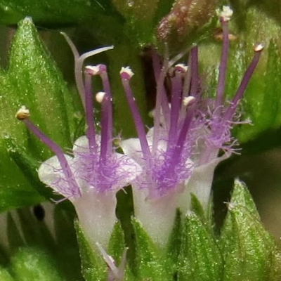 (Pogostemon) ==台灣原生種== ●台灣刺蕊草(Pogostemon formosanus) (台灣特有種;半灌木;單葉對生,卵形至掌裂狀,不規則鋸齒緣,具長柄;穗狀輪繖花序,腋生或 頂生;花瓣4枚,白色;雄蕊4枚,花絲細長, 直刺狀,紫色,具紫色絲毛;雌蕊柱頭2叉) |