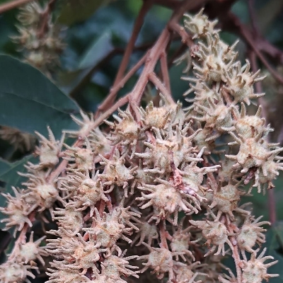 (Melanolepis) ==台灣原生種== ●蟲屎(Melanolepis multiglandulosa) (原生種;喬木,樹高可達10公尺以上;雌雄異株(雄株偶生雌花,雌株偶生雄花);單葉互生,卵形至掌形,鋸齒緣;圓錐花序,頂生;花朵小型,單性,無花瓣;雄花的花萼5裂,黃綠色,像花瓣,雄蕊多數;蒴果球形,3瓣狀,成熟裂開,可見橙色種皮) |