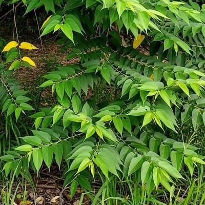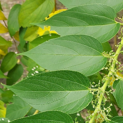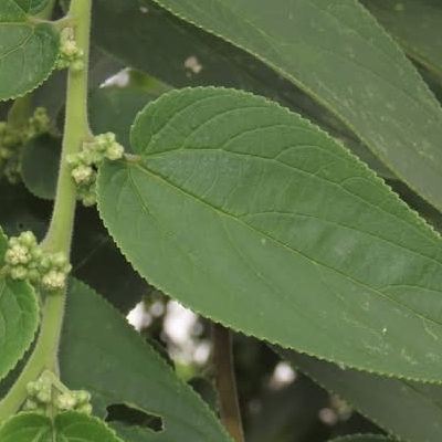 (Trema) ==台灣原生種== ●山黃麻(Trema orientalis) (原生種;小喬木或中喬木;小枝密被伏貼的短絨毛;單葉互生,卵形、長卵形至卵狀披針形,細鋸齒緣,葉基心形,新葉葉背常密被伏貼的短絨毛,呈現銀白色;花序腋生,單性或雜性,雌雄異株或同株;核果近球形,成熟紫黑色) |