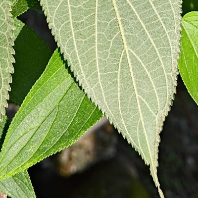 (原生種) ●山油麻(Trema dielsiana、Trema tomentosa) (原生種;小枝、葉背葉脈密被直立的短絨毛) |