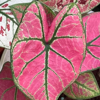 (栽培種) •紅脈彩葉芋(Caladium bicolor 'Jessie Thayer') (栽培種) •粉紅彩葉芋(Caladium bicolor 'Gen. W. B. Halderman') (栽培種) •粉紅美人彩葉芋(Caladium bicolor 'Pink Beauty') (栽培種) •紅脈彩葉芋(Caladium bicolor 'Hok Long') (栽培種) |
