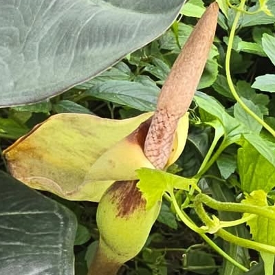 天南星科暴風芋屬 更多照片: 20250820_01 照片:小花老師拍攝於台北植物園 |