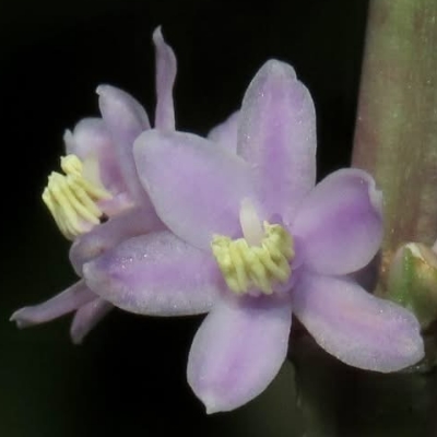 (花朵3~5朵簇生,花直立,花色多淡紫,花藥黃色;果實球形,熟果為紫黑色) ==台灣原生種== ●小麥冬(Liriope minor) (原生種;原生於台灣、日本、高麗半島和中國大陸;世界植物在線 POWO 附有標本照片;台灣物種名錄標名小麥冬,標示栽培種;維基百科標名矮小山麥冬,附有照片;多年生草本;單葉互生,叢生,線形,細鋸齒緣;葉寬小於0.4公分;總狀花序;花序長12公分以下,有5~10節;花被片6枚,白色至淡粉紅色;核果球形,成熟紫黑色) |