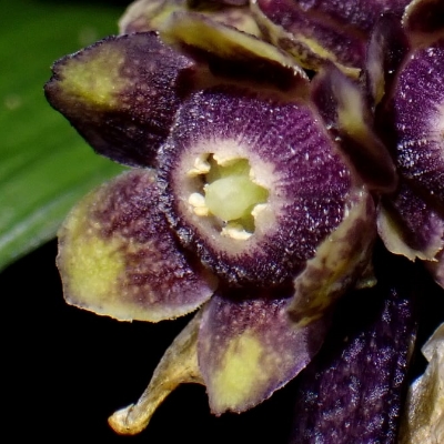(Peliosanthes) ==台灣原生種== ●矮球子草(Peliosanthes macrostegia、大蓋球子草) (原生種;原生於台灣、中國大陸、越南和馬來西亞...等地;台灣物種名錄標名矮球子草,別名大蓋球子草;維基百科標名大蓋球子草;多年生草本;單葉互生,基生,狹長橢圓形,具長柄;花被片6枚,暗紫色至淡黃綠色;雄蕊6枚合生,向內聚攏,深紫色;果實卵形,成熟紫藍色) |