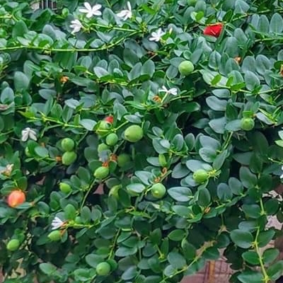 (栽培種;常綠小灌木;無刺) •圓葉卡利撒(Carissa grandiflora cv. 'Minima'、無刺卡利撒) (栽培種;無刺) |