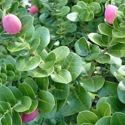 (栽培種;維基百科標名刺黃果;常綠灌木;枝腋常具直刺;單葉對生,卵形;聚繖花序,頂生,白花,5瓣,花徑2~3公分,常同時開3朵花,花筒水紅色,花朵具有微香;漿果卵形,成熟紅色) •納達爾梅子(Carissa carandus) (栽培種;台灣物種標示的學名和維基百科的刺黃果拼字略有不同,可能是同物種) |