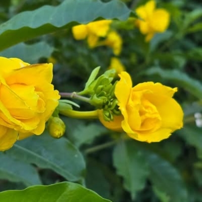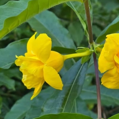 ●小花黃蟬(Allamanda schottii、Allamanda neriifolia、硬枝黃蟬、黃蟬) (栽培種;世界植物在線 POWO 標示 Allamanda neriifolia = Allamanda schottii,皆為有效學名;灌木) |