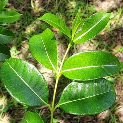 (Cerbera) ==台灣原生種== ●海檬果(Cerbera manghas、海杧果、海芒果) (原生種;維基百科標名海杧果;常綠小喬木;單葉互生,倒披針形,革質,叢生枝端;聚繖花序,頂生;花冠長漏斗形,花瓣5枚,白色,中心有橘紅色;花5枚,綠白色;核果,卵形至橢圓形,成熟紅色至紫色,可藉潮水漂流傳送;全株具白色乳汁,有毒性;耐風力強,可作為海濱地區防風及防潮之樹種) |