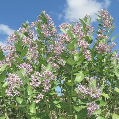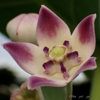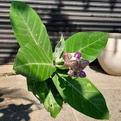 ●圓果牛角瓜(Calotropis procera、白花牛角瓜、索多瑪蘋果) (栽培種;台灣物種名錄查無此學名及中文名) | ||