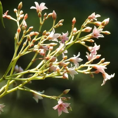 (栽培種;香港柴娃娃植物網標名水梅;維基百科標名無冠倒吊筆;常綠灌木或小喬木,高度可達6公尺;單葉對生,長卵形;花序下垂,聚繖狀,花瓣5枚,白色,帶有香味;蓇葖果,豆莢狀,對生,如筆垂吊;種子具白色冠毛,可藉由風力傳播) ●重瓣水梅 (栽培種) •藍靛木(Wrightia laniti) (栽培種) |