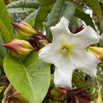 (Beaumontia) ==非台灣原生種== ●清明花(Beaumontia grandiflora) (栽培種;台灣物種名錄查無此學名及中文名;維基百科標名清明花;常綠木質藤本;對生葉,倒卵形;花冠白色或淡黃色) |