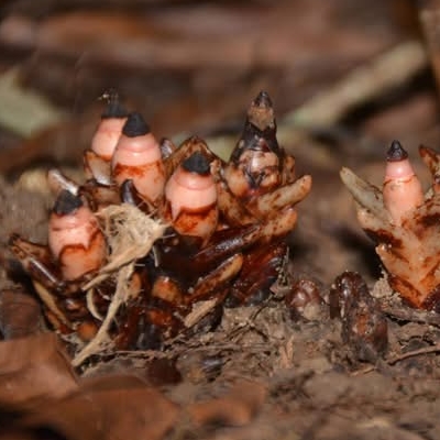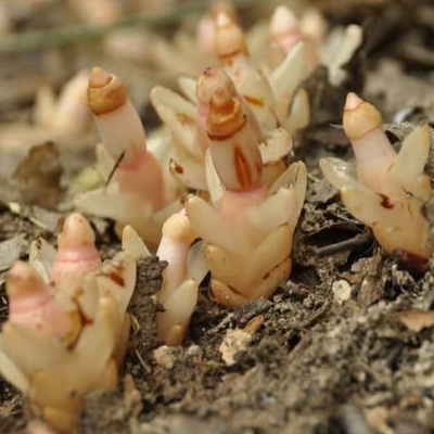 (Mitrastemon、帽蕊草屬) ==台灣原生種== ●菱形奴草(Mitrastemon kanehirai、多鱗帽蕊草) (台灣特有種;台灣紅皮書標示瀕危;南投蓮華池和桃園東眼山有分布;一年生肉質草本;寄生植物;寄生於特定殼斗科(鋸葉長尾栲或其他殼斗科)植物的根上);株高3~5公分;植物體呈倒圓錐形;植株4棱狀,單葉對生,5~6對,卵形至披針形,鱗片狀;單花,頂生;先雄蕊 期,再雌蕊期;多數雄蕊合生成筒狀,成熟自動脫落,露出粉紅色雌蕊,授粉後的雌蕊頭部變黑,種子在子房孕育) |