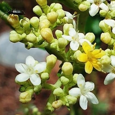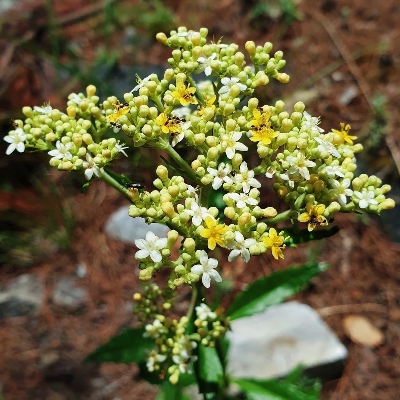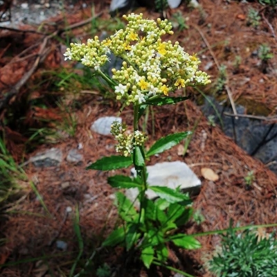(Patrinia) ●台灣敗醬(Patrinia formosana) (大型草本;莖直立,高度可達200公分,基部木質化;單葉,對生,闊卵形至橢圓形,鋸齒緣,被毛;花初開為白色,後轉黃色;瘦果具翅狀果苞) |