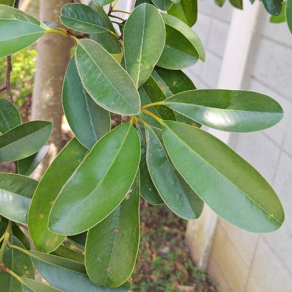木蘭科烏心石屬 更多照片: 20211123_03 照片1:沈揮勝拍攝 照片2:蟹老闆拍攝於新北市安和國小 照片3:陳維琪拍攝 照片:葉形像榕樹葉,花梗比較短 |