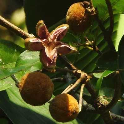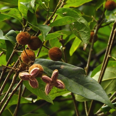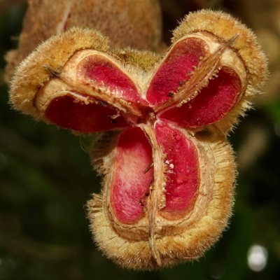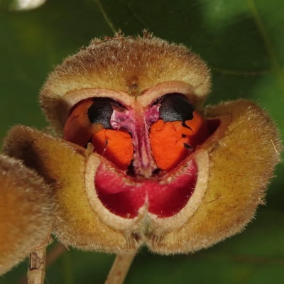 (Sloanea) ==台灣原生種== ●猴歡喜(Sloanea formosana) (台灣特有種;常綠小喬木至中喬木;常具板根;單葉,長橢圓形,全緣狀;總狀花序,腋生,呈繖房狀;花朵有長柄,花瓣撕裂狀,黃綠色,雄蕊多數;蒴果木質,球形,密被褐色絨毛,成熟3~5瓣裂;種子黑色,有磚紅色假種皮) |