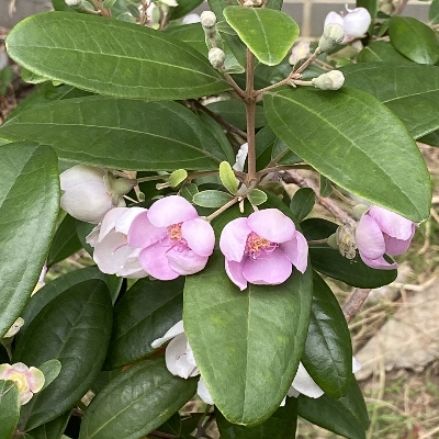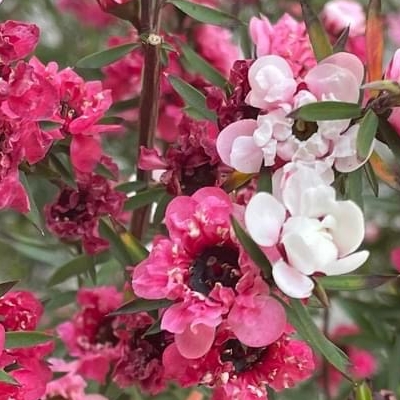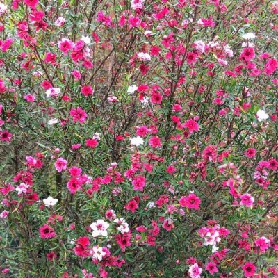 (Leptospermum) ●松紅梅(Leptospermum scoparium) (株高約2公尺;花有單瓣、重瓣之別;花色有紅、粉紅、桃紅、白等多種頻色) |