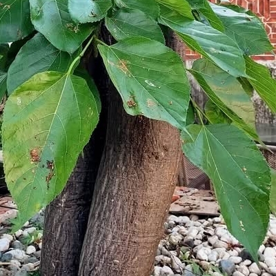 桑科桑屬 更多照片: 20210323_04 照片:蟹老闆拍攝於新北市安和國小 照片:拍攝同一株 照片2:未確定雌雄,據說掌狀深裂瘦型是雄株 |