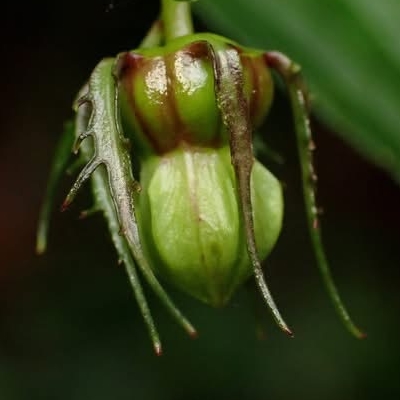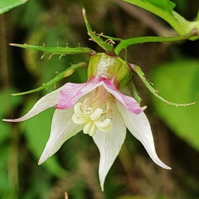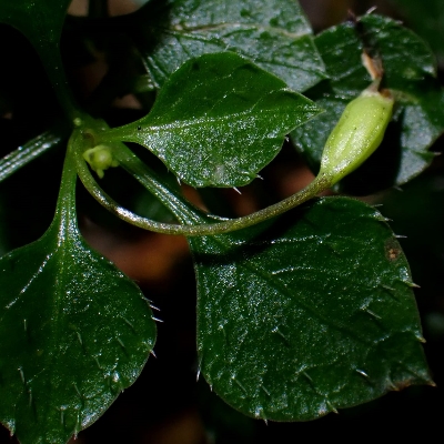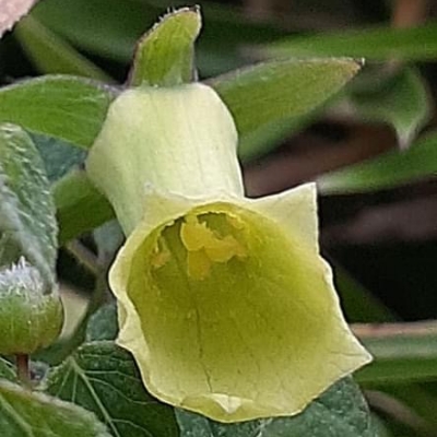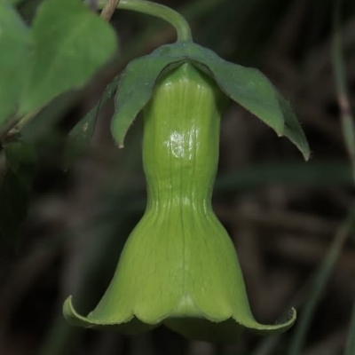●玉山山奶草(Codonopsis kawakamii) (台灣特有種;纏繞性草本;單葉互生或對生,卵形至寛卵形,兩面被毛;花朵單生,腋生或頂生,花梗細長;花冠筒狀,花瓣5枚;花萼5枚,平展,披針狀;雌蕊柱頭3叉;蒴果奶嘴狀;全株具特殊氣味) | ||