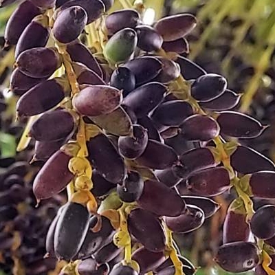 (Phoenix、刺葵屬) ==台灣原生種== ●台灣海棗(Phoenix loureiroi var. loureiroi、Phoenix hanceana) (原生種;世界植物在線 POWO 標示 Phoenix hanceana = Phoenix loureiroi var. loureiroi;Phoenix loureiroi 中文名是刺葵;小喬木;雌雄異株;果實橢圓形,成熟顏色變化,由綠轉橙黃,再轉紫黑色,長約1.2公分,基部具宿存的杯狀花萼) ==非台灣原生種== ●海棗(Phoenix dactylifera、中東海棗、椰棗、波斯棗、棗椰子、番棗、海棕) (栽培種;維基百科標名椰棗;中喬木;雌雄異株;果實橢圓形,成熟橙色,長1.5~2.5公分,可食用) •刺葵(Phoenix loureiri) (栽培種) |