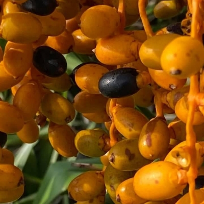 (Elaeis) ●油椰子(Elaeis guineensis、油棕) (栽培種;中喬木;葉柄殘存;花單性,雌雄同株異序;果實成熟由黃轉橙,再轉褐黑色,聚合果重約10~20公斤,果實可煉製食用油) |