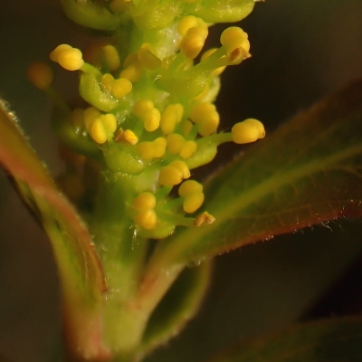 (金虎尾目) 〉楊柳科 〉魯花樹屬 (Scolopia) ==台灣原生種== ●莿柊(Scolopia chinensis) (原生種;世界植物在線標示原生於中國大陸至馬來西亞;台灣物種名錄標示為原生種,原生於金門;常綠小喬木;單葉互生,卵形至橢圓形,淺鋸齒緣,側脈4~5對,葉基兩側具腺體,葉腋常具有長刺;總狀花序,頂生;花瓣5~6枚,白色至淡黃色;雄蕊多數,細長;漿果球形,徑約0.5公分,成熟紅色至紫黑色,花柱宿存) |