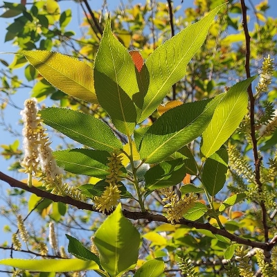 (Salix) ==台灣原生種== ●水柳(Salix warburgii) (台灣特有種;落葉喬木,高可達15公尺;雌雄異株;葉為橢圓形至倒卵狀橢圓形,細鋸齒緣,葉背有白粉;葇荑花序,基部有葉,像長在側枝頂端,無花瓣;果紡錘形,果梗長,果序如狼牙棒;蒴果成熟,可見柳絮) ●水社柳(Salix kusanoi) (台灣特有種;落葉喬木,高可達10公尺以上;雌雄異株;葉為卵至長橢圓狀披針形,細鋸齒緣,葉背披毛,無白粉;葇荑花序,腋生,基部無葉,無花瓣;雄株開花時,全株披滿金黃色花絲,別名金柳;蒴果成熟,可見柳絮) |