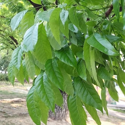 (歸化種;小葉3~6對,葉長約3~8公分;蒴果木質,卵球形,長度不超過15公分,成熟5裂;果長大於葉長;種子具翅,藉由風力傳播) •墨西哥桃花心木(Swietenia humihs) (栽培種) |