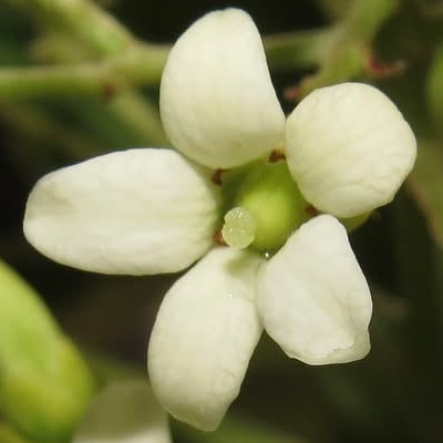 (Pittosporum) ==台灣原生種== •蘭嶼海桐(Pittosporum moluccanum) (原生種;世界植物在線標示原生於印尼(不含台灣),附有標本照片(葉片倒披針形);種小名moluccanum是「麻六甲的」的意思,,麻六甲是馬來西亞的地名;台灣物種名錄標示為原生種;維基百科標名蘭嶼海桐,附有照片;單葉互生,倒披針形,長度可達8公分以上(海桐短於6公分);葉片叢生於莖頂;圓錐花序,頂生;花瓣5枚,白色,具長梗;蒴果卵形,成熟2瓣裂(海桐是3瓣裂),果徑約3公分) |