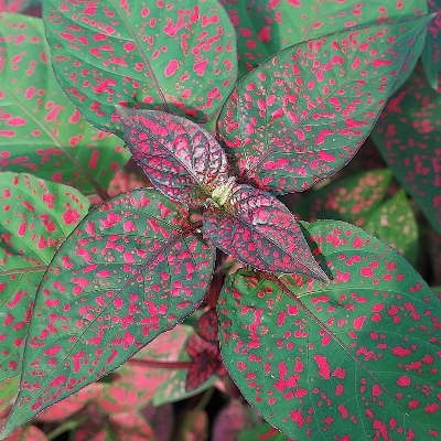 ●大葉紅點草(Hypoestes phyllostachya 'Carmina'、卡蜜娜紅點草、深紅嫣紅蔓)