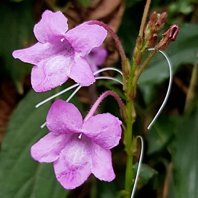 (Asystasiella) ==台灣原生種== ●尼氏擬馬偕花(Mackaya neesiana、Asystasiella neesiana、Asystasiella chinensis、擬馬偕花、白接骨) (原生種;原生於台灣、中國大陸至中南半島一帶;世界植物在線 POWO 標示 Asystasiella neesiana = Mackaya neesiana,皆為有效學名;維基百科標名白接骨;台灣紅皮書標示易危;一年生草本;單枼,長卵形至橢圓狀披針形;總狀花序,頂生;花冠筒特別細長,被細毛;花瓣5枚,粉紅色) |
