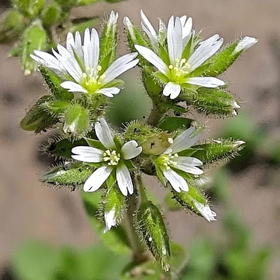 ==非台灣原生種== ●球序卷耳(Cerastium glomeratum) (歸化種;台灣物種名錄標名球序卷耳;花梗短,近似頭狀花序) |