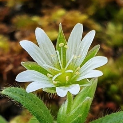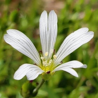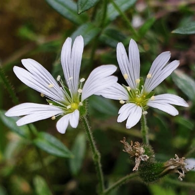 ●狹葉簇生卷耳(Cerastium holosteoides、Cerastium fontanum subsp. vulgare、Cerastium fontanum var. angustifolium、Cerastium holosteoides var. hallaisanense、簇生泉卷耳) (原生種;原生於歐亞大陸;世界物種名錄 POWO 標示 Cerastium fontanum subsp. vulgare = Cerastium holosteoides 皆為有效學名,附有照片(相符);台灣物種名錄查無此學名及中文名;中國植物智將 Cerastium fontanum subsp. vulgare 標名簇生泉卷耳;世界植物在線標示 Cerastium holosteoides var. hallaisanense = Cerastium fontanum var. angustifolium,皆為有效學名,標示原產地包含日、韓等地;台灣物種名錄將 Cerastium fontanum 標名喜泉卷耳,標示為原生種;將 Cerastium fontanum var. angustifolium 標名狹葉簇生卷耳,別名卷耳、泉卷耳、玉山卷耳,標示為台灣特有種;中國植物智標示 Cerastium fontanum var. angustifolium = 簇生泉卷耳 Cerastium fontanum subsp. vulgare;多年生草本;單葉對生,長橢圓狀披針形;花序少於10朵,通常花瓣比萼片稍長,花瓣裂片圓鈍) |