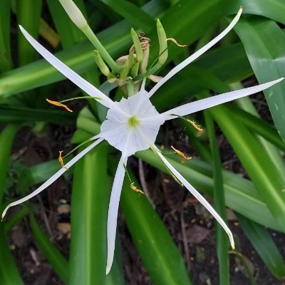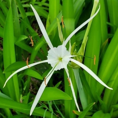 (Hymenocallis、水鬼蕉屬) ==非台灣原生種== ●螫蟹百合(Hymenocallis speciosa、蜘蛛百合、螫蟹花、蜘蛛蘭、螯蟹石蒜) (栽培種;台灣物種名錄標名螫蟹百合,別名蜘蛛百合、螫蟹花、蜘蛛蘭、螯蟹石蒜,附有照片;維基百科標名螫蟹百合,別名蜘蛛百合、螫蟹花、蜘蛛蘭、螯蟹石蒜、世蟹百合,附有照片;多年生草本;地下莖球形,粗大;葉片叢生,劍形;繖形花序,有6枚細長的花被,白色;副花冠蹼狀相連,往外突出6枚綠色花絲;蒴果球形或三稜形) |