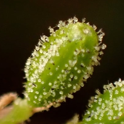 紫茉莉科黃細心屬 更多照片: 20210309_02 照片:陳維琪拍攝 照片3:果實倒倒圓錐棍棒狀,表面有短腺毛 |