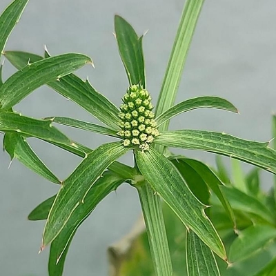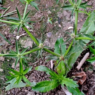 (Eryngium) ==非台灣原生種== ●刺芫荽(Eryngium foetidum、刺芹、假芫荽) (歸化種;芫荽讀元雖;台灣物種名錄標 名刺芫荽;維基百科標名刺芹,別名刺芫荽、假芫荽、節節花,附有照片) |