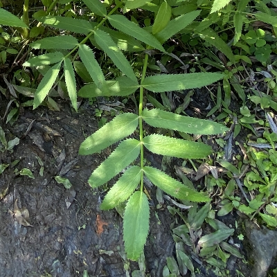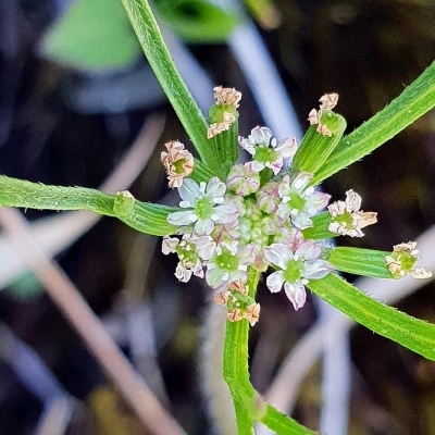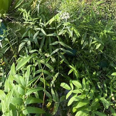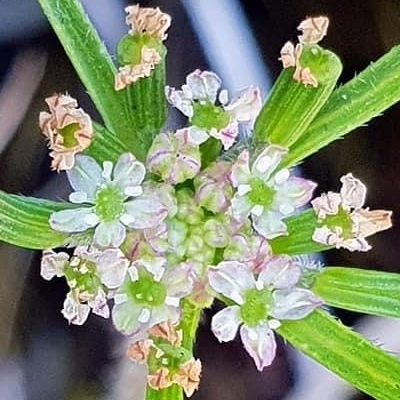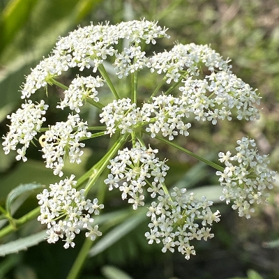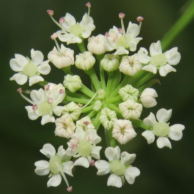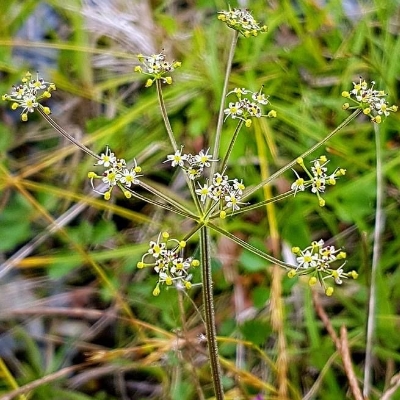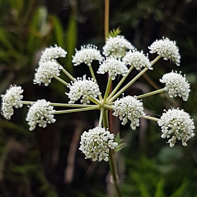 (Sium) ==台灣原生種== ●細葉零餘子(Sium suave、 澤芹) (原生種;多年生草本;多生於濕地;奇數羽狀複葉,對生;小葉3~11枚,披針形,鋸齒緣;複合繖形花序,腋生或頂生;花朵小型,小花具長梗,小花序組成小半球,小半球再組成大半球;花冠白色;雄蕊5枚,雌蕊柱頭2叉;離果橢圓形,略扁,分果片具稜) |