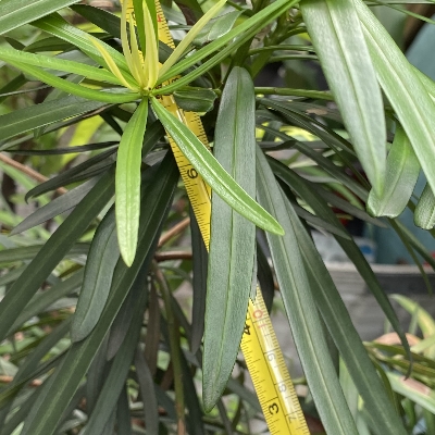 羅漢松科羅漢松屬 更多照片: 20220914_01 照片:蟹老闆拍攝於新北土城 照片2:葉長約16.5公分 |