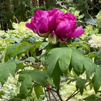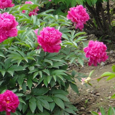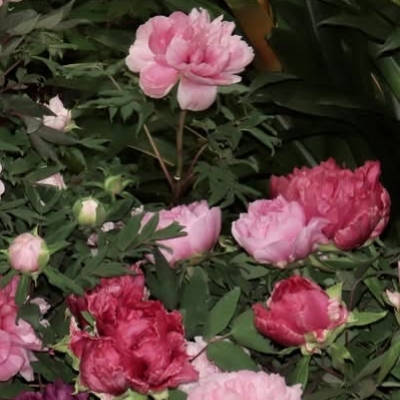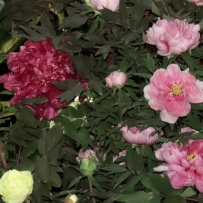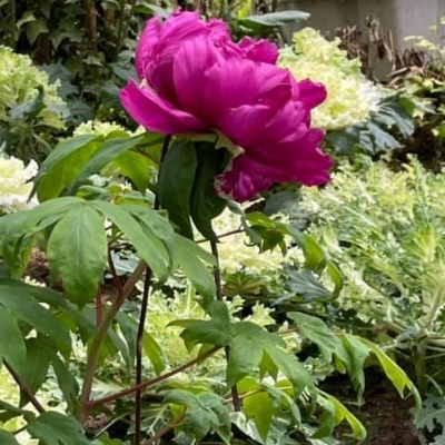 ●牡丹(Paeonia × suffruticosa、富貴花、洛陽花、木芍藥) (栽培種;雜交種;原生於中國大陸;落葉性灌木,株高可達2公尺;分枝短而粗;二回三出複葉,小葉常3~5裂;花朵單生莖頂,花瓣5枚或重瓣,花徑約20公分) | |||