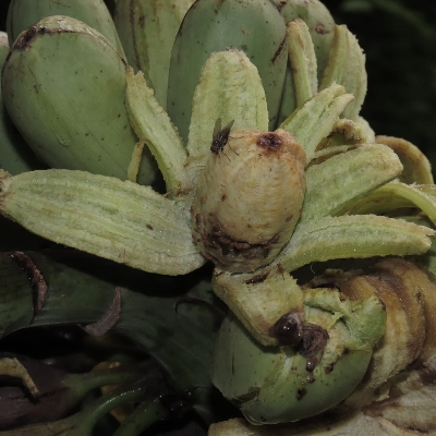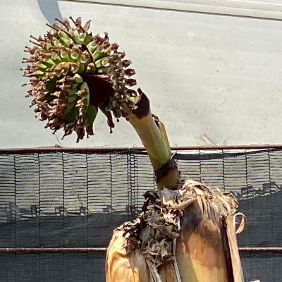芭蕉科芭蕉屬 更多照片: 20210317_06 照片1、3:蟹老闆拍攝於新北市安和國小 照片2:潘玉郎拍攝 (砍斷的香蕉樹,樹頂開花結果) |