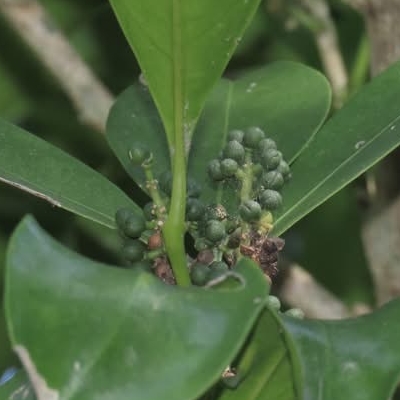 ●假三腳虌(Melicope triphylla、三葉蜜茱萸、假山腳鱉、蘭嶼三刈葉) (原生種;原生於台灣、中南半島、菲律賓和新幾內亞;維基百科標名三葉蜜茱萸;灌本至小喬木;三出葉,互生;小葉倒卵形至倒長卵形;聚繖花序,排成總狀,腋生;花序短,花密集;花瓣4枚,卵形,白色;雄蕊8枚,4強;雌蕊柱頭4叉;蓇葖果,圓形,1枚或2~4枚合生,大小不一) |
