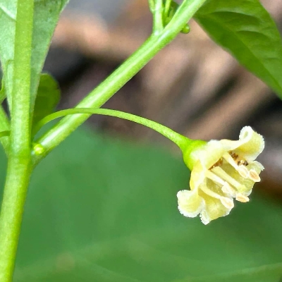 (Tubocapsicum) ==台灣原生種== ●龍珠(Tubocapsicum anomalum) (原生種;原產於亞洲東部和東南部;多年生草本;單葉互生,卵形、橢圓形至卵狀披針形,近全緣;單花,花梗細長,2~6朵叢生葉腋,花瓣5枚,反捲,淡黃色,花徑不到1公分;漿果卵球形,果徑約1公分,成熟紅色,表面光滑具光澤) |