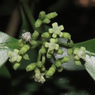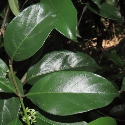 ●檄樹(Morinda citrifolia、黃木巴戟) (原生種;檄讀昔;灌木至小喬木,高1~5公尺;單葉對生,具短柄,橢圓形,長10~30公分;花小,白色,5瓣;聚合果,卵形,長約4~7公分,成熟淺黃至白色,具有臭味,果實俗稱諾麗果,可食用;全年開花、結果;利用海潮傳播種子) | ||
