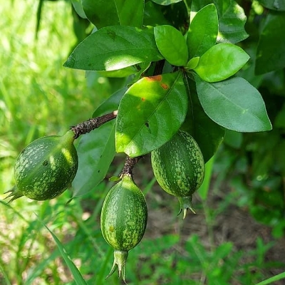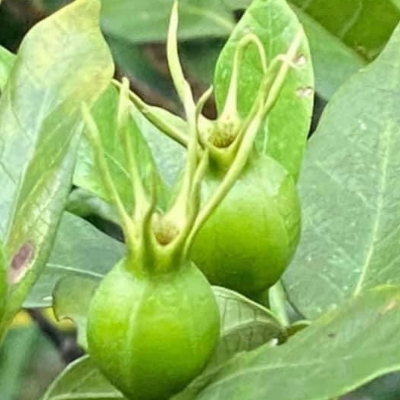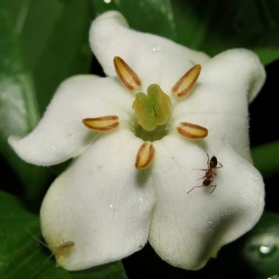 (台灣物種名錄查無Catunaregam,維基百科標示山石榴屬) ==台灣原生種== ●對面花(Catunaregam spinosa、Randia spinosa、山石榴) (原生種;原生於台灣、中國大陸至非洲一帶;世界植物在線標示 Randia spinosa = Catunaregam spinosa,皆為有效學名,附有照片;台灣物種名錄標名對面花,別名鼻血刺、山石榴,附有照片;小喬木至灌木;莖枝被毛,腋間具刺;單葉對生或叢生,長橢圓形、長橢圓卵形至倒長卵形,全緣;花朵單生葉腋;花瓣5枚,白色,具短柄;漿果圓形,狀似小芭樂,有刺芭樂之別稱,果實具凹稜,有毒不可食) |