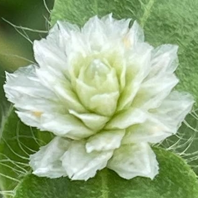莧科千日紅屬 更多照片: 20210803_07 照片1、2:陳維琪拍攝 照片3:蟹老師拍攝於新北市中和 照片2:發現變異的頭狀花序 |