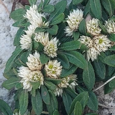 (歸化種;維基百科標名銀花莧;葉面具光澤) ●短穗假千日紅(Gomphrena serrata) (歸化種;原生於美洲;草本;匍匐生長;全株密被棉毛;單葉對生,卵形至橢圓形,無柄;花序頂生;苞片具明顯薄翼,呈鋸齒狀) |