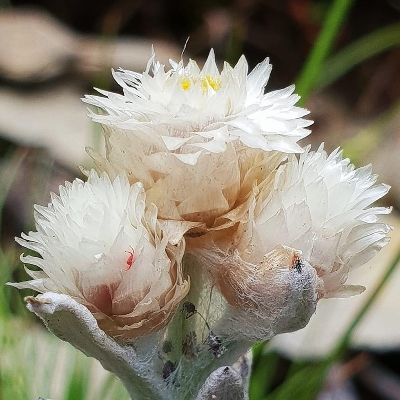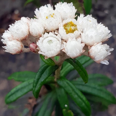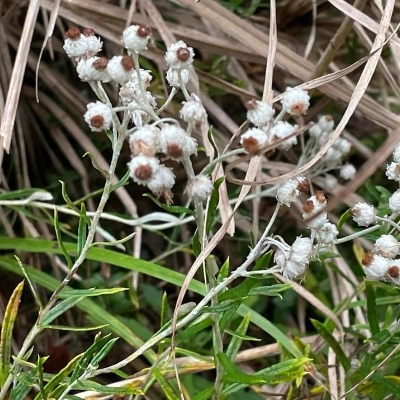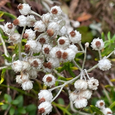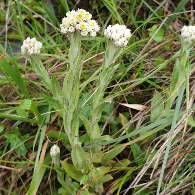 ●永澤籟簫(Anaphalis nagasawae、Anaphalis nagasawae var. niitakayamensis、永健香青) (台灣特有種;世界線上植物志 WFO 標示 Anaphalis nagasawae 僅產於台灣;台灣物種名錄將此物種誤標為尼泊爾籟簫 Anaphalis nepalensis (台灣並不產尼泊爾籟簫);維基百科和中國植物智將 Anaphalis nagasawae 標名永健香青;永澤籟簫是日治時期日本學者命名的,有2個變種學名,花序由1~2個頭狀花序組成的,學名為 Anaphalis nagasawae var. nagasawae;花序由3~5個頭狀花序組成的,學名為 Anaphalis nagasawae var. niitakayamensis;多年生草本;基部分枝,偶有走莖;全株密被蛛絲毛;單葉互生,倒卵形至倒長卵形,基生葉呈蓮座狀;頭狀花序生於枝端,數枚,苞片覆瓦狀排列) | •珠光香青(Anaphalis margaritacea) (栽培種;世界植物在線標示原生於台灣、東北亞至印度半島一帶,以及北美洲;台灣物種名錄標無此學名及中文名) | |