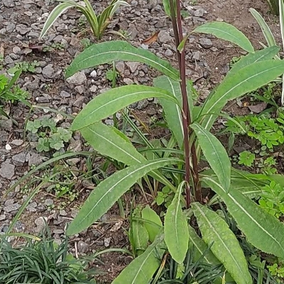 ●苦滇菜(Sonchus oleraceus、苦菜) (歸化種;世界植物在線 POWO 附有照片(相符),標示原生於歐洲至非洲北半部;台灣物種名錄標名苦滇菜,別名苦菜,附有照片;維基百科標名苦菜,別名苦苣菜、滇苦蕒菜、苦滇菜;香港柴娃娃植物網和中國植物智標名苦苣菜,別名苦蕒菜(台灣所稱的苦苣菜是指同屬的不同物種);多年生草本;莖直立,常呈紫紅色,光滑或疏生腺毛;單葉互生,常呈魚骨狀分裂,尖刺鋸齒緣,上部葉耳狀抱莖;頭狀花序,頂生,呈繖房狀排列;頭花徑約2公分,小花全為舌狀花,黃色;總苞多層,或疏生細刺毛;瘦果倒長卵形,扁平,棕色;冠毛白色,絲狀) |